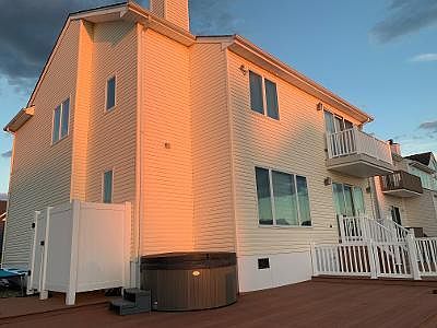 Beautiful home in very desirable neighborhood, exceptional waterfront location with 60 foot dock on deep water, Premium location cul de sac only one block to the bay which gives you protection from the open bay. and a short boat or wave runner ride to open water. Nicest street in Bayville, very private and quite neighborhood, enjoy walks to the boardwalk and bay beach or bicycle through the neighborhood. Open floor plan is great for entertaining. All hardwood and tile floors. Upstairs are three bedrooms and two full baths, master bedroom with large walk in closet and balcony. Vaulted ceiling in entrance, first floor extra bedroom/office , kitchen, dining area, living room and laundry room. Composite deck on back of house with hot tub. Extra large two car garage and plenty of storage space.