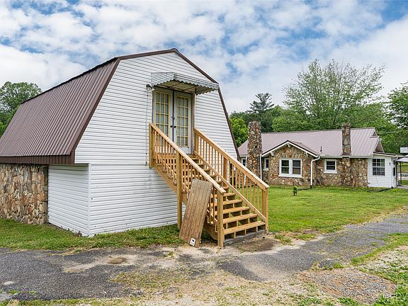 Motivated seller, bring all offers! Great commercial potential too. Sited on a private 0.74-acre property, perfect country living with a secluded feel but minutes from downtown Hendersonville, Apple Country and all Henderson County has to offer. The timeless stone facade gives way to a home that encompasses the highest livability with an easy floor plan. The one-level living offers a living room, kitchen and dining area with fresh paint and new flooring in dining area only, two bedrooms, and a shared recently updated bath. An upper level is great for additional storage or adding a heat and cooling source for additional living. There are many places to enjoy the serene setting from the covered front porch to the level yard space. The backyard is perfect for entertaining or gardening with room to expand. Multiple parking spaces for you and your guests, a detached carport and detached garage with upper living space. This is a must-see. Septic permit not found.