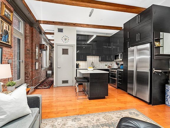 CITY SKYLINE VIEWS FROM YOUR PRIVATE DECK! ENJOY INDUSTRIAL CHIC SPACES AND ENVIABLE OUTDOOR LIVING IN THE NORTH END! Stroll from dinner to this enhanced loft in a boutique building just a stone’s throw to Rose Kennedy Greenway and minutes to the Hub on Causeway shopping, dining and entertainment. An elevator whisks you up to refined open concept living where large windows, soaring ceilings, exposed brick walls and rough hewn beams lend character and warmth. Relax with an aperitif in the sun-dappled living room or grab an espresso from the kitchen where a symphony of stainless, clean lines and custom lacquer cabinetry will delight the senses. A glimpse outside reveals a true oasis. Take in panoramic sunset views of Boston on the expansive patio where you can create alfresco spaces for entertaining, lounging and gardening like no other. Paradise found! Retire to the primary suite with generous closet space at day’s end and emerge refreshed and rejuvenated. YOUR URBAN SANCTUARY AWAITS!