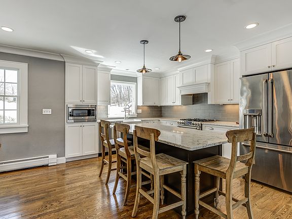 Beautifully updated this 4 bedroom, 2.5 bath home is perfect for today's buyer with open floor plan, white kitchen, beautiful master suite & private fenced in yard just minutes from train & town. Sure to wow this newly renovated white kitchen with breakfast bar & stainless steel appliances opens to a dining area & family room with bay window & fireplace. Four bedrooms & 2 updated full baths complete the second floor. The master boasts a wall of built-in closets & a new en-suite bath. A second family room, mudroom, laundry room, & two car garage are on the first level. Sliding doors open to patio & amazing fenced in yard perfect for play & gardening with putting green & firepit. The lower level has a room perfect for an office or playroom & a large storage room. This is a home you will not want to miss!