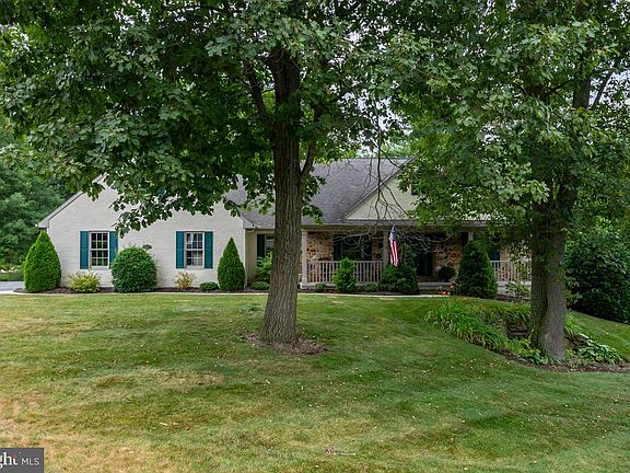 In lovely Summerfield at Elverson in the northwestern corner of Chester County, this ONE FLOOR single family home is located on Summerfield's prestigious Stoneridge Drive on almost an acre complete with mature trees and flower beds. The inviting front porch is only the first of many desirable features. A hardwood covered entry leads into an expansive great room with a propane fireplace. With five skylights and vaulted ceilings on the first floor, this home is bright! A separate dining room with wainscoting and hardwood floors is a great space for holiday meals and entertaining. The eat in kitchen is complete with custom cabinetry, granite counters, tile backsplash, tile flooring and a large bay window overlooking the private back yard. Custom integrated designer appliances include a Subzero refrigerator, Viking stove, Meile dishwasher and a trash compactor. Two french doors from the living room and one from the kitchen lead to a 4 season room with mahogany floors and a white pine ceiling. Two guest bedrooms and a full bath are privately placed on one side of the home with the large master suite on the other. A laundry room and pantry complete the first floor living space. The extra large two-car side entry garage has additional storage with pull down stairs to an attic above. An immense unfinished basement with large windows and a door exits to a patio in the back. Outdoor spaces abound with numerous flower gardens and shade trees. A raised deck with steps to grade is accessible from the 4 season room. A paved walkway leads to the deck steps and lower patio. The back yard, perfect for family picnics, includes a stone propane grill, making outdoor cooking easy. Stoltzfus-built, this one floor single is only one of 9 custom homes in the 320 home Summerfield community. With 2X6 exterior walls, precast Superior basement walls and geothermal heating/cooling, this home is comfortable and affordable. Lawn care and snow removal to your garage door are included in the low HOA fee of $1,625/year. Summerfield is a pedestrian-friendly community in the quaint town of Elverson in northwestern Chester County. Convenience to shopping and the turnpike exchange is a few minutes west in Morgantown. Live a safe and quiet life in the beautiful country setting of Summerfield.