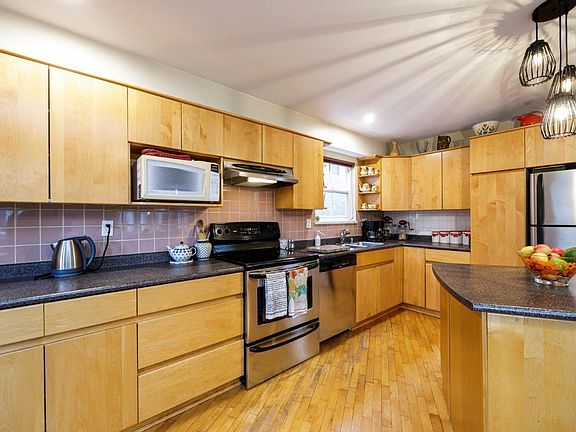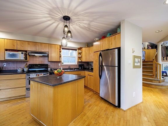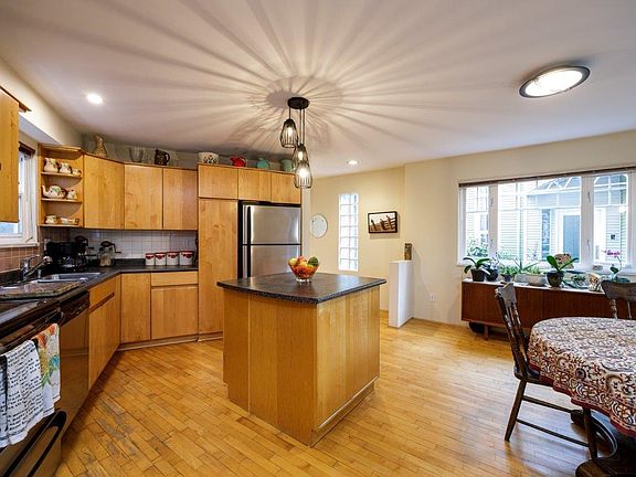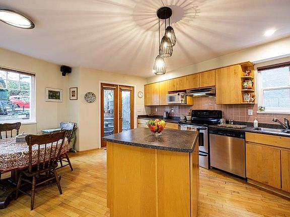 Beautiful detached home in quiet CAPITAL HILL area with panoramic VIEWS of Burrard Inlet & Burnaby Mountain from a large 300 sf ROOF TOP DECK. This West Coast Contemporary three story designed home has FOUR BEDROOMS & FOUR BATHROOMS, including a one bedroom walk out SUITE. Great indoor/outdoor living with multiple decks & balconies on all floors. Other features include a large kitchen with an island and separate eating area, high vaulted ceilings, in-floor radiant heat, a GAS FIREPLACE to cozy up to in the living room, French doors in the dining room, & wood floors. Lane access to a one car GARAGE & CARPORT. Updates include windows, deck surfaces, painting & exterior siding. Central location close to amenities, recreation, walking trail, & great schools. Easy to show. Great value!