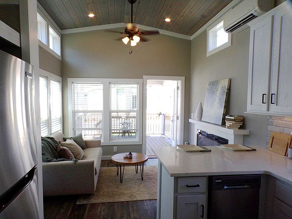 Built by Clayton Homes, this beautiful one-bedroom cottage features an open-concept floor plan with a built-in entertainment center in the living area. Large windows provide plenty of natural lighting and the raised ceiling creates a spacious interior feel. Optional outdoor upgrades include a large covered porch with a screen or EZ breeze porch enclosure, a private detached shed for storage or as an additional craft/artist studio, a fenced pet area, and more. Prices are subject to change without notice, check with community for most current pricing.