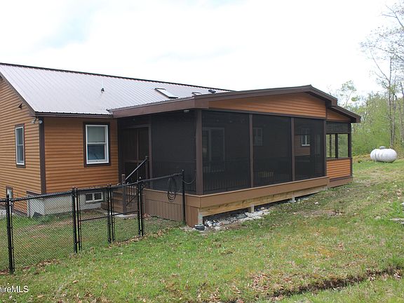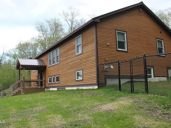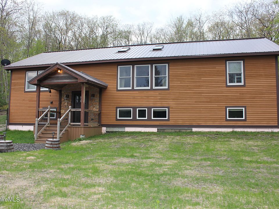Raised ranch, 4 bedrooms 2 1/2 baths. Vaulted ceilings in living areas. Main floor has 3 bedrooms and 2 baths. Wood floors. Many updates: Bathrooms remodeled, Vaulted ceiling finished with tongue and groove wood. HVAC split system heat pump along with hot water baseboard heat on the main floor. Finished basement has large family room, 1 bedroom, 1 office and a storage room. Pellet stove provides heat for the finished basement. Dining area exits to a covered deck almost the full length of the house. Deck is enclosed with screens, has led lighting surround sound with Bluetooth stereo and hot tub. Exterior is finished with low maintenance materials, metal roof, cedar clapboard, stone veneer entry and Trex decking.