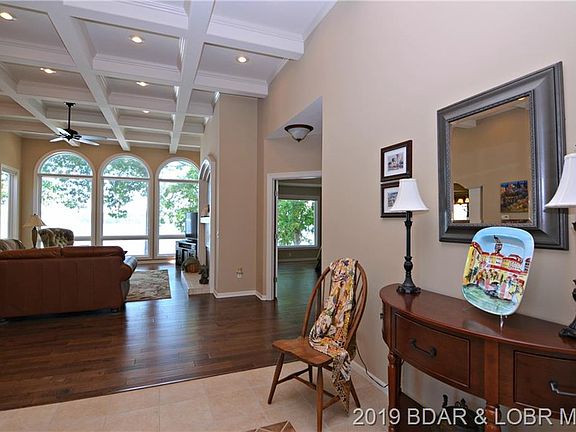WOW!! WHAT A SUPERB VIEW FACING NORTH DOWN THE CHANNEL!! GREAT FLOOR PLAN WITH MASTER SUITE/HARDWOODS/TWO WALK-IN CLOSETS/LARGE TILED MASTER BATH/DOUBLE VANITIES.LARGE TILED KITCHEN WITH GRANITE & INCREDIBLE VIEWS. UPGRADED CABINETRY & LARGE PANTRY. DINING AREA OFF KITCHEN/WOOD FLOORING. VAULTED GREAT ROOM WITH GAS FIREPLACE/WOOD FLOORING. LOWER LEVEL FOUR BEDROOMS 2 FULL 1 HALF BATH. CUSTOM MURPHY BED IN 1 BEDROOM-ONE LAKESIDE BEDROOM CURRENTLY USED AS OFFICE WITH BUILT IN CABINETRY. GENEROUS FAMILY ROOM/WET BAR FOR ENTERTAINING FAMILY/FRIENDS. 1224 SQ FT OF HEATED GARAGE & WORKSHOP. START MAKING FAMILY MEMORIES NOW !! CONVENIENT TO SHOPPING/DINING/LAKESIDE ENTERTAINMENT SPOTS. THIS IS A GREAT PROPERTY!!!! PER AMEREN WAVEBREAK IS A POSSIBILITY-