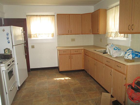 Two story colonial style home in great location near all schools. First floor offers a lst floor bedroom or family room or double living room, formal dining room and semi modern eat in kitchen. Enclosed porch off kitchen and great yard. Second floor has three large bedrooms with closets. Home is dated but a substantial home with vinyl siding, newer windows and roof. Gas HA heating, updated CB electric. During the Summer the Spring St Park is down the street and there is access to McNab School. Wolfort's pond city park within quick walk.