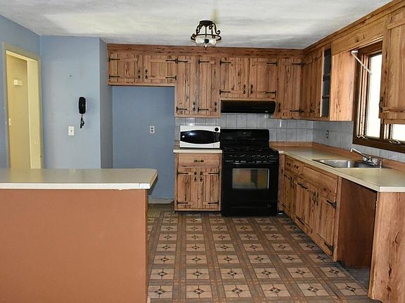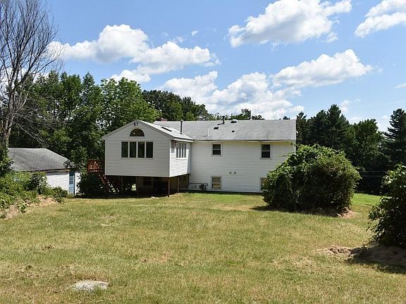 This split-entry ranch offers 2 bedrooms, 2 full baths with additional living spaces in the lower level that could also be used as more bedrooms or an in-law suite. Upper level features two bedrooms w/ full bath and laundry, open-concept kitchen / dining / living room with fireplace, ideal for entertaining. Wood laminate flooring in the living room and dining area. Bright and sunny family room is directly off the kitchen surrounded by windows, cathedral ceiling and skylights, ceramic tile floor and featuring a gas stove for those cold Winter nights. Lower level has two additional spare rooms, a rough kitchen / dining area, full bath and laundry area. Step out the side entrance for close access to the detached 2-car garage, or to outdoor space with private backyard featuring a wood shed to store your lawn mower and snow blower. Plenty of space to spread out in 1 acre of land, and blooming fruit trees on the property!