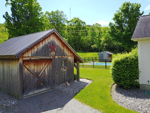 Four Bedroom Colonial with attached in-law apt - Built in 1999, this very well maintained, beautifully landscaped 4 bedroom, two and 1/2 half bath home sits on 2.21 acres with lake views conveniently located in St. Albans Town. Granite counter tops with hickory cabinets in the kitchen boasting new subway tile as well as all kitchen appliances being updated in the last few years to include gas range with double oven. Ash hardwood floors, ceramic tile and carpet throughout entire dwelling. First floor has open floor plan in kitchen/dining/living with 1/2 bath, office and sitting room/formal dining room. Second floor consists of 4 bedrooms and two full baths. There is a three car attached heated garage with an unfinished bonus room above as well as a partially finished basement with lots of storage space. Municipal water/sewer and natural gas heat. This home also has a 600 square foot in- law apt with one bedroom, full bath with W/D and an open living/dining/kitchen. Both kitchens look out to a 16'x34' in-ground pool with a covered open air deck and patio. Also on the property is a 18'x20' Post & Beam barn with loft. The main house was just freshly professionally painted with the beautiful gray hues and the in-law apt was spruced up in 2011 with paint, carpet, new kitchen countertops and new bath vanity. Walk on trails directly from backyard straight to Aldis Hill/Hard'ack. Country setting within walking distance to beautiful downtown St. Albans. Full front porch to enjoy the sunsets over Lake Champlain. For more information or to have look, please call 802-309-0960.
