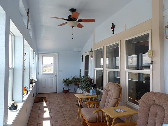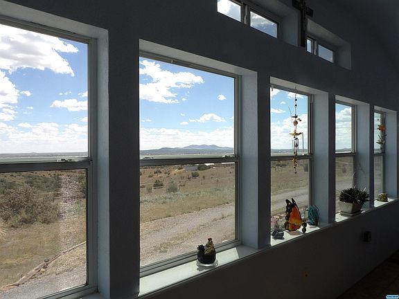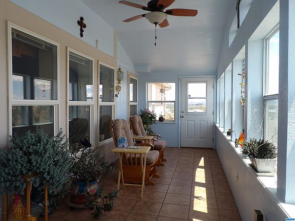 Top of the world is what this property feels like! 360 degree views from this well maintained 3/2 manufactured home with amenities such as ceiling fans, drywall, laminate floor with 30 year warranty, work center in kitchen, all appliances convey, metal roof, gutters, rock skirting and a sun room built on the front to provide passive solar heat and a place to watch the world. The metal shop/garage building is 30' x 40', insulated, with 220 electric, a pellet stove and 2 roll up garage doors. There's also two well built sheds, a covered patio plus covered porch in the landscaped, fenced back yard, and a carport next to the house! All of this situated on a 2 acre lot, minutes from Highway 180. There is so much here to appreciate!