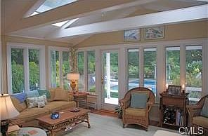 For more information on this property, contact William Raveis Real Estate, Mortgage & Insurance at 1-888-699-8876 or contact@raveis.com. A MUST SEE CHARMING 5 BED, KELLOGG COLONIAL LOCATED IN THE HEART OF WILTON ON A DESIRABLE CUL-DE-SAC. OPEN FLOOR PLAN W/ SPACIOUS ROOMS, COIFFERED CEILINGS, CROWN MOLDING. NEW SUNROOM W/ GAS FPL OVERLOOKS MAJECTIC BLUE STONE PATIO, ARCHITECTURALLY DESIGNED TERRACE WITH PICTURESQUE POOL AND INFINITY SPA IN A PRIVATE SETTING SURROUNDED BY PERENNIAL GARDENS. GOURMET EIK W/ SUB-ZERO, BOSCH DW, VIKING DBL WALL OVEN, WARMING DRAWER, GAS RANGE & PANTRY. WET BAR OPENS TO INVITING FAMILY ROOM. MAIN LEVEL LAUNDRY RM W/ STORAGE. UPDATED MASTER ENSUITE W/ADD'L 2 FULL BATHS/4 LARGE BDRMS. FINISHED WALK OUT BASEMENT W/ 1/2 BATH, BONUS FAMILY ROOM + PLYRM & STORAGE. NEWER FURNACE. A RARE FIND IN THIS PRICE RANGE W/ ALL THAT IS NEEDED TO MAKE IT YOUR HOME.