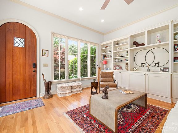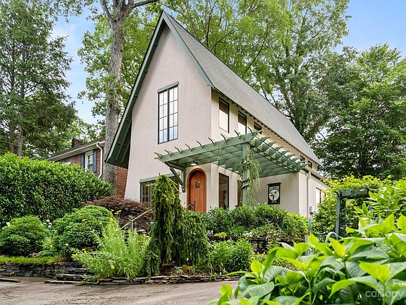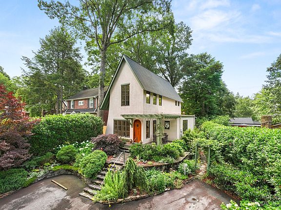 Enchanting European cottage with asymmetrical roof, large casement windows, functional floor plan and stunning landscaping awaits you in Montford Hills. Beautiful stone terracing showcases a plethora of unique trees, shrubs and perennials- providing vibrant color, sweet fragrance and privacy. Enter through an arched doorway into the open living space on the main level, still connected with the beauty of nature through the tall windows. Throughout the home you will find custom cabinetry and shelving. The primary bedroom is on the main level with direct access to a large, screened in, covered deck. Upstairs there are two bedrooms, an oversized landing / sitting area, and a family room providing versatility for many lifestyles. Use this space as a TV room, while keeping the downstairs living room dedicated to conversation, or have these rooms for family to spread out and have their own space. Love where you live and be close to it all.