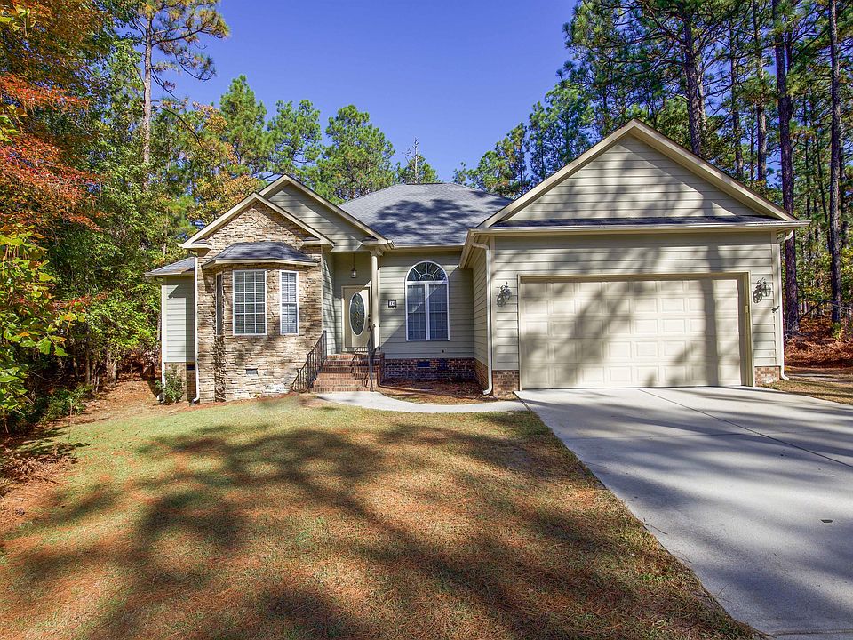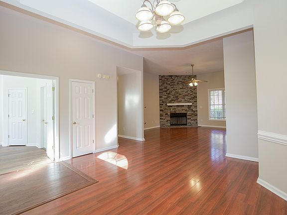 Updated and rent ready! This home is located on a quiet cul-de-sac in sought after Carolina Lakes, rich with amenities. The home boasts single story living with new flooring, fresh paint and a brand new deck! The entry and living areas have high ceilings as well as a fireplace stone feature wall. The kitchen has all of your conveniences, SS appliances, pantry, a bay window in the breakfast nook and a formal dining room for your family meals! Off the foyer is the first bedroom, with a walk in closet and a half bath. The main bedroom suite has a full ensuite as well as a sizeable walk in closet and rear deck access. Two more bedrooms and a full bath are located on the other end of the home, as well as a laundry room. Tenants in Carolina Lakes can enjoy gate security as well as access to the lake, pool, covered picnic area and clubhouse.
