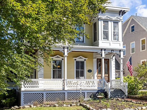 MULTIPLE OFFERS- OFFER DEADLINE 9/12 AT 3PM! Enter through the grand double doors from the wrap around porch and you are greeted by an elegant staircase with original newel post and light. Appreciate the details as you move in to the LVRM with cased opening to take in the soaring 12ft. ceilings and plaster crown molding. Through the DNRM you will see one of the 3 custom stained-glass windows that adorn the insulated Marvin windows. From there you are lead into your updated gourmet kitchen with custom cabinetry, stainless appliances, updated fixtures, ample storage in a large island and a tucked away laundry room as well as the back staircase. Off the kitchen you have a FMRM wired for sound with full BA and separate office. Head out to the deck overlooking your inground pool with water slide in your fenced in yard to grill and relax. Retreat up to the 2nd or 3rd floor where you will be surprised to find plentiful storage and up to 6 bedrooms and 2 full baths.