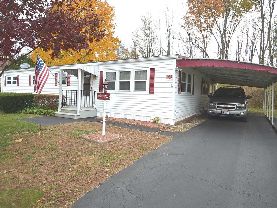 Take a look at this well kept mobile home at the end of a cul-de-sac in Tallyho Estates. This home offers a spacious living room, formal dining room, full kitchen, 2 guest rooms, guest bath and a large master bedroom with private bath. This home also has a laundry room, central air conditioning, car port, and a private rear yard with sunroom which is difficult to find in a park setting. There is a generator hook up in case your have a power outage. Last but not least enjoy the community pool and clubhouse as a member of the park. You must be 55 or older to live in this community.