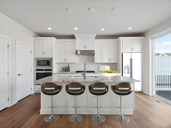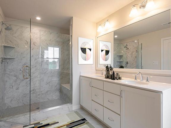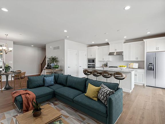 Thoughtful urban design. The Colman's welcoming covered entry and foyer reveal an elegant staircase, and open immediately onto the spacious dining room and great room beyond. The well-designed kitchen is equipped with a large center island with breakfast bar, ample counter and cabinet space, and roomy walk-in pantry. The beautiful primary bedroom suite is highlighted by a generous walk-in closet and spa-like full primary bath with dual-sink vanity and luxe glass-enclosed shower with seat. Secondary bedrooms feature roomy closets and share a full hall bath with dual-sink vanity. Additional highlights include a convenient powder room on the first floor and centrally located laundry on the second floor. Disclaimer: Photos are images only and should not be relied upon to confirm applicable features.