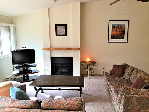 Upper Level condo with scenic views of Airport Mesa and a rear balcony to enjoy them. Community pool, grassy area, and clubhouse.