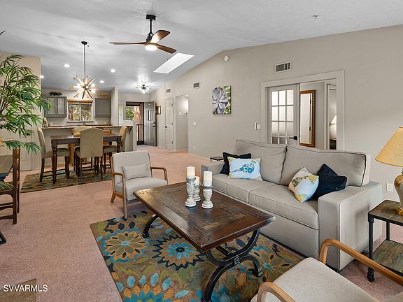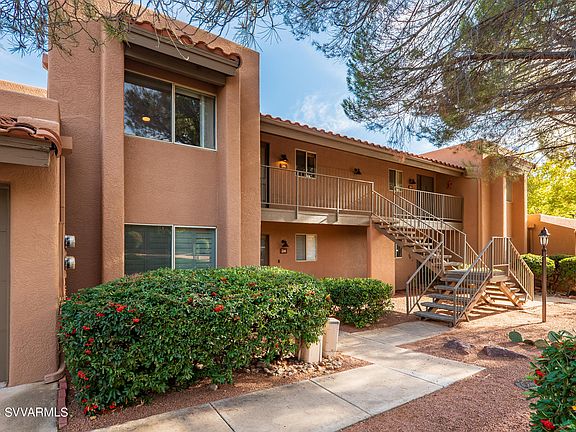 Exceptional Morning Sun Condo. Ideally situated in W. Sedona this tastefully updated 2BR, 2BA second-floor, 1176 Sq. Ft. condo w/ a one car garage - imparts humble but lovely RR & Mesa views. The open, bright great room & primary suite faces beautiful Airport Mesa views & the verdant arroyo - providing valued privacy. Delight in nature while birdwatching or spotting the occasional coyote, deer & bobcat from the balcony. Kitchen updates: new refrigerator, DW, sink, faucet & flooring. Bath updates: new dual sink vanities, Carrera marble countertops, sinks, faucets, mirrors, vanity lights, plumbing fixtures & flooring. New washer & dryer, ceiling fans, light fixtures & more. Community Clubhouse, pool, & hot tub. Experience this lovely well-priced Condo today! See supplement for more info! HOA Dues will be $310.00 beginning January 2024.