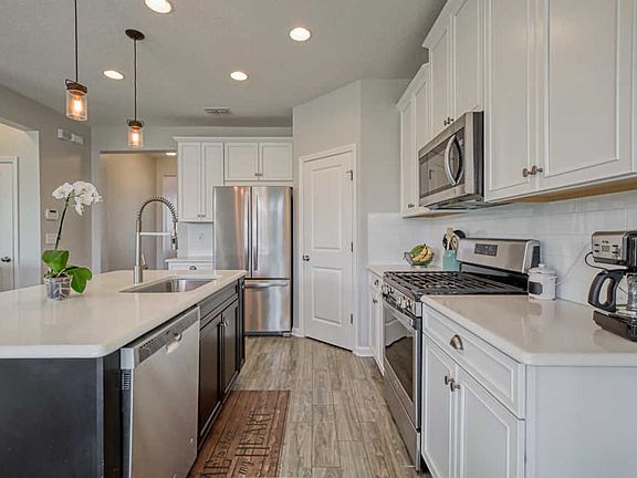 There is no need to wait for a home to be built in this beautiful Rivertown community. The perfect home is ready and waiting for its new owner. This amazing 3 bedroom 2.5 bath home has so many upgrades and all the finishes that most would want. Fantastic wood look tile floors throughout the 1st floor along with a flex/office space with french doors. The luxurious kitchen features white subway tiles, stainless appliances, and a great breakfast bar. The kitchen opens to the family room which is loaded with space and windows. The dining room looks out to the great backyard that overlooks a peaceful pond. Upstairs has a great loft space as well as bedrooms and the laundry room. The master bedroom is spacious and the master bath has quartz countertops with an invisible glass shower.