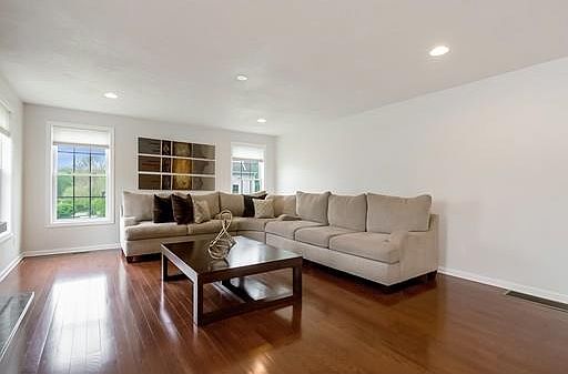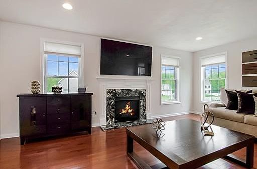 Better than new construction. 3.5 years young, Contemporary Colonial, lovely neighborhood. 4 Bedrooms, 2.5 Baths, Central AC, 2 car oversized garage. Gleaming hardwood floors throughout the first floor. The inviting open floor plan includes a luxurious cabinet filled kitchen w/upgraded Stainless appliances, stunningly unusual granite counter tops, + an exotic stone + stainless backsplash. Kitchen area opens to a bright Living Room w/a gas fireplace w/ a matching granite surround. Good sized formal Dining Room, + a slider to a deck that overlooks the plush grassy yard with lovely trees and landscape. Go up the wood staircase to 3 nice sized bedrooms, plus the exclusive, + very grand Master Bedroom suite that will not disappoint! Walk in closet, Master bath w/matching granite, vanities w/double sinks + 2nd floor laundry room. Basement designed to be completed finished w/full sized windows + a slider to the plush large back yard. Water softener + filtration system added. MOVE IN AND LIVE!