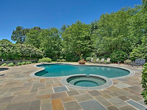 This casually elegant home on just over 2 acres has 4 bedrooms, 5 1/2 baths. The Kitchen and Casual Dining Area were recently spectacularly renovated along with a outdoor stone patio and fireplace. A broad hallway spans the length of the house creating exceptional living and entertaining areas such as Family Room, Dining Room and Library. At the end of the hallway is the Conservatory/Living Room with fireplace and wet bar which opens to a bluestone-covered porch overlooking mature English gardens. The generously sized Master Bedroom is ensuite with 2 walk-in closets. Another large guest/in-law ensuite bedroom has its own separate sitting area with its own staircase. The partially finished basement has lots of natural light, is walk-out leading to the pool area, and has a full bath. 30 kW Generac generator.