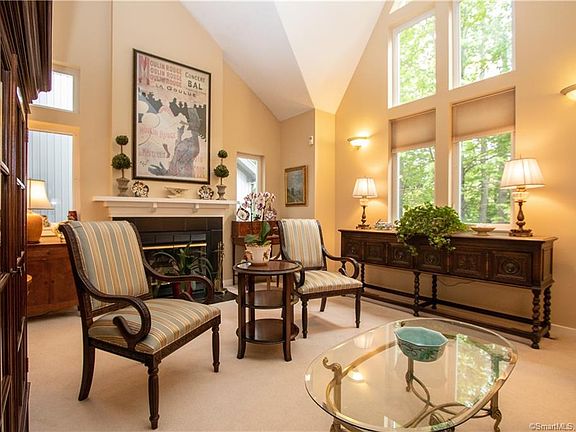 Rarely available Townhome in highly desirable Old Mountain Village on east side of Farmington within minutes of UCONN Health Center, West Hartford Center, highways (Rt 84 and 9. Small Tai Soo Kim designed complex with easy access to walking trails around the MDC reservoir. Home features cathedral ceilings in living room and master suite and windows to take advantage of natural sunlight and surroundings, two bedrooms, 3.1 baths with finished walkout lower level ideal for a home office, guest suite or family room or gym, attached 1 car garage. Kitchen has like-new stainless appliances. Washer/Dryer located on main floor and are included. FP in living and sliders from dining room to the private deck. Spacious, sun-filled Master Bedroom Suite with walk-in closet, vanity, cathedral ceiling and skylight. Gas heat, central air, guest parking right across from the unit. Exteriors freshly painted and wood trim repaired.