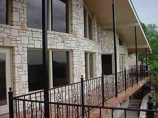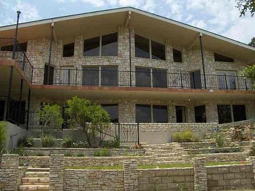 Entertainers Estate!!! Beautiful long range views from this Texas Hill Country stone home that has been newly renovated. Nestled on a vast 9.8453 acres with varieties of trees, including Texas Madrone. Waterfalls cascade in front of home among new landscaping. Focal point is the massive fireplace, but does not hinder views from plate glass windows. Tasteful Spanish-style home inside with surround sound and large TV and massive table and chairs convey. Many trails and paved driveways. Pond below home