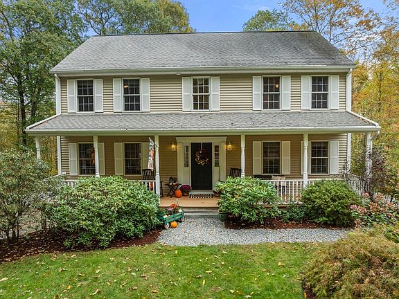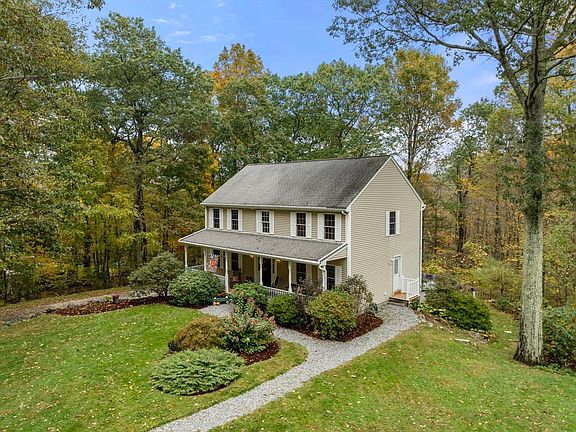 Welcome to 26 Town Farm Road, a move in ready colonial with great curb appeal and set on a private lot. The front porch welcomes you as you enter to find newly refinished hardwood floors throughout and a two story foyer. The cabinet packed kitchen is bright and offers a gas stove top plus tons of pantry storage and laundry access. The dining area and kitchen are open concept off of the kitchen with a charming wood stove and slider access to the two level deck. A half bath and dining room/office complete the first floor. Upstairs, you'll find a primary suite with a large closet and two other spacious bedrooms plus a full bath. The walkout basement offers fantastic storage space or more potential living space. Outside, you'll find a gorgeous and private lot with mature landscaping and a pool. Minutes to the Mass Pike, 84, and tons of restaurants and shopping. Brookfield is in the highly rated Tantasqua school district. Don't miss this picture perfect colonial!