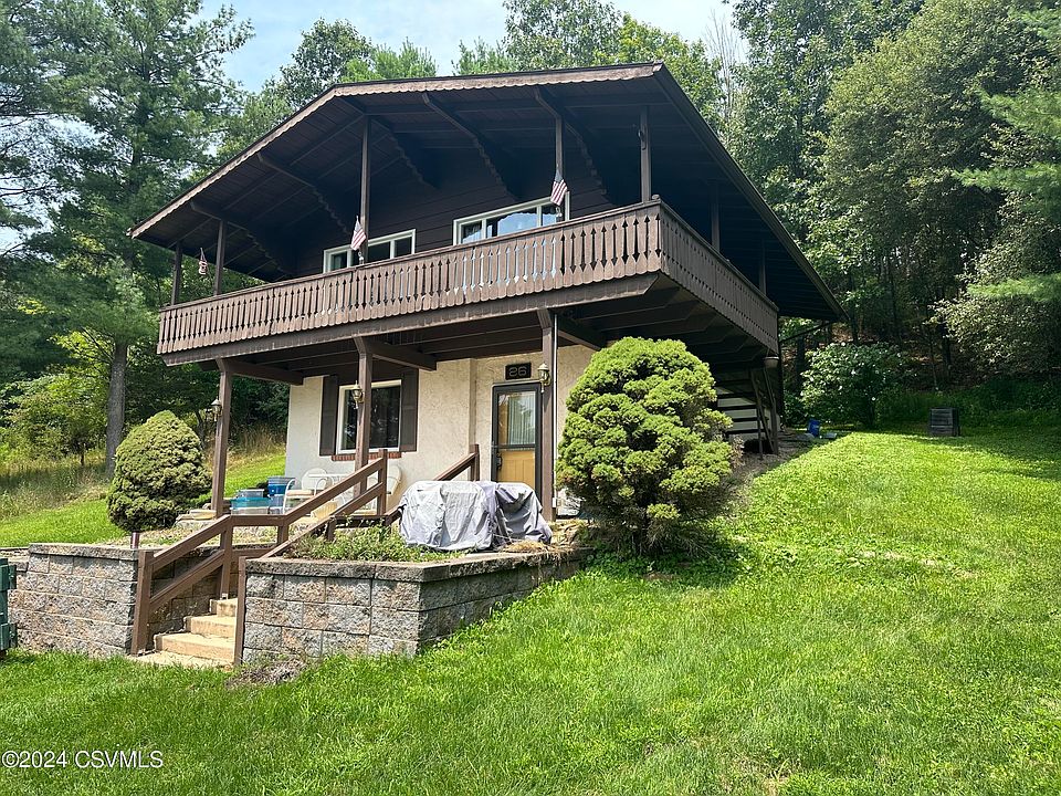 Come see this unique property with 2 chalet style homes on 3.3 acres with a great view! The main house is 2-Bedrooms and 2 1/2 baths with a wrap-around 2nd floor covered deck. Then there is a great 1-2 bedroom apartment over the 3-car garage detached garage. Live in either space and rent the other to pay your mortgage!