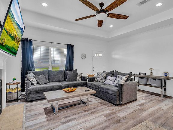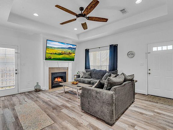 - Ceiling Fan(s), Walk-In Closet(s), Fireplace, High Ceilings, Kitchen Island