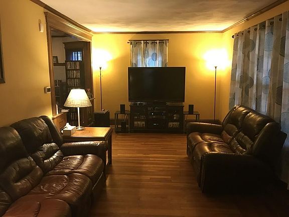 INVITING 4 Bedroom Colonial. Stained Glass with Oval Front Door will welcome you. Inside, you will find the Oversized Living Room, Formal Dining Room with built in hutch and Cherry Kitchen w/eating area plus a spacious pantry Wood Floors throughout and lots of natural woodwork and raised panel doors. Double sided stairs from living room or Kitchen to second floor and Walk up third floor attic. You are sure to love Stained Glass Accents. Circuit Breakers, Gas Heating, Gas Hot Water and Newer Architectural House Roof. Enjoy your added wrap around front porch, second floor porch,15 X 20' rear deck and fenced back yard. Convenient to restaurants, services, fitness and super markets in nearby East Longmeadow. Also, on a bus line with easy access to highways, schools and downtown.