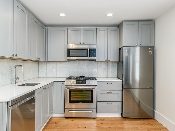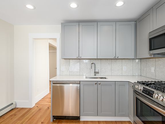 Welcome to 26 Turner Street Unit 1 located on Munjoy Hill in Portland. This unfurnished 2 bedroom, 1 bathroom property is in a supreme location mere steps to the Eastern Prom for sunrises, picnics and play or minutes to the thriving business, foodie and cultural center of downtown. This renovated garden level apartment offers hardwood throughout, a modern kitchen, sprinkler system and new energy efficient heating system and on demand hot water. It is perfect for a couple looking to experience city living, retirees looking to downsize or professionals relocating to southern Maine. Living/Kitchen: This apartment has two entrances; one directly into the kitchen and the other opens in a small area perfect for a writing desk or reading nook. The well-lit kitchen has a clean Scandinavian vibe blending gray and white marble with stainless appliances, including a gas range and smart wifi enabled dishwasher. There is room for a bistro table or breakfast bar against the outside wall between the two windows for eat in charm. The living space has room for a sitting area or dining table under the bay windows. There is a smart wifi enabled washer with dryer off of the kitchen. The kitchen features a 15 foot cubic foot refrigerator with bottom freezer, and a 5 burner gas range including quick boil burner, low simmer and one touch self cleaning. Bath: The attractive full bathroom is finished with light gray tiling and a deep bathtub, perfect for soaking after a long day. There are both hand held and a speakman shower head. There is a smart wifi enabled washer and dryer included just off the kitchen in the apartment. Bedrooms: The larger of the two bedrooms has three windows for ample natural light with a garden view and a walk-in closet. The second bedroom is in the back of the space for those who prefer a darker sleeping room. It could also be used as an office, workout or TV room. Both rooms have ceiling fans. Area Details: Munjoy Hill is a unique area of Portland that attracts artists, young professionals and where many people choose to live after relocating from larger cities. With sweeping views of Casco Bay, the Eastern Prom is a favorite spot for lounging in the grass on sunny days. "The Hill," as it is called, is home to small shops offering everything from jewelry, art, homemade croissants and Roman pizza. While most conveniences are steps from Turner Street, the hub of Portland is a ten-minute walk away. Nature trails, bike paths and many outdoor areas are in close proximity as well. Esat End charm at its best. Tastefully restored, fully renovated. Tenant Responsibilities: The lease term for 26 Turner Street Unit 1 is one-year. Guests are responsible for all utilities including internet. Trash collection is run by the public works, but Portland requires special trash bags, which are available at the supermarkets. Only street-parking is available, but in-town garages offer monthly memberships and the city is very bike-friendly. The space is unfurnished, however the Apex team is available to recommend local shops for furnishings, art and the like so this feels like your home. 1 year lease term required. Tenant pays utilities. First, last and security required.