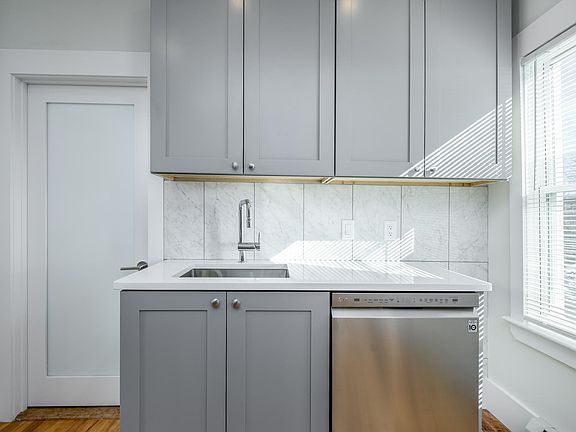 Welcome to 26 Turner Street located on Munjoy Hill in Portland. This unfurnished 2 bedroom, 1 bathroom property is in a supreme location mere steps to the Eastern Prom for sunrises, picnics and play or minutes to the thriving business, foodie and cultural center of downtown. This renovated second floor apartment offers hardwood throughout, a modern kitchen, sprinkler system, new energy efficient windows and steam shower. It is perfect for a couple looking to experience city living, retirees looking to downsize or professionals relocating to southern Maine. Kitchen/Living: At the top of the front staircase into this apartment, there is a sweet little space for a reading chair or sun loving plants. The kitchen has an elevated Euro-feel with ample, clean-lined gray cabinets, stainless appliances and white granite. There is room for a bistro table between the two windows. The extra-sunny living space allows for a dining table or sitting area under the bay windows and a TV area in the back of the elongated room. There is a washer and dryer off of the kitchen. Bed/Bath: The first bedroom has a bay window for those who appreciate natural light; this room could also be used as an extended living space or large home office. The second bedroom has a large closet and less window light for those who enjoy a darker sleep. This room could also be a TV or exercise room. The attractive full bathroom has a large glass shower and marble finishes. Area Details: Munjoy Hill is a unique area of Portland that attracts artists, young professionals and where many people choose to live after relocating from larger cities. With sweeping views of Casco Bay, the Eastern Prom is a favorite spot for lounging in the grass on sunny days. "The Hill," as it is called, is home to small shops offering everything from jewelry, art, homemade croissants and Roman pizza. While most conveniences are steps from Turner Street, the hub of Portland is a ten-minute walk away. Nature trails, bike paths and many outdoor areas are in close proximity as well. Tenant Responsibilities: The lease term for 26 Turner Street is one-year. Guests are responsible for all utilities including internet. Trash collection is run by the public works, but Portland requires special trash bags, which are available at the supermarkets. Only street-parking is available, but in-town garages offer monthly memberships and the city is very bike-friendly. The space is unfurnished, however the Apex team is available to recommend local shops for furnishings, art and the like so this feels like your home.