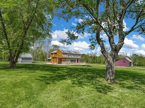 Cleared meadows & wooded acreage encircle this artist’s retreat on a quiet road in upper Bucks County. What began as a small stone cottage built in 1885 has been expanded over the years into a gracious 3 bedroom home. Bluestone & reclaimed random width oak floors run throughout most of the house, with the living room fireplace boasting a locally quarried stone ledge. Semi-custom Medallion cabinets in the kitchen are set off by gold-flecked granite countertops & 6-burner electric AGA range. A 1st floor bedroom & laundry facilities are convenient amenities. Upstairs, the primary suite features a vaulted ceiling w/hand-hewn pegged beams, loft area, en suite bath & large walk-in closet. Also on this floor is a 2nd suite w/loft storage. Exterior amenities include an incredible 360-degree wraparound patio, a fully finished & heated office & detached garage. Surrounded by 14.65 acres of peaceful countryside, Lyric Acres is a joy in every season.