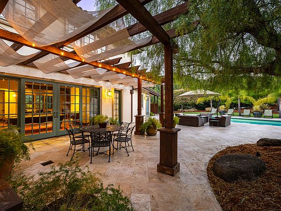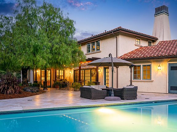 Discover the perfect blend of luxury and convenience in this Mediterranean-inspired retreat ideally positioned on nearly 2 acres of land between San Francisco and the scenic Sonoma/Napa wine country. Nestled on a tranquil hilltop within a serene neighborhood, this custom-built sanctuary offers unparalleled privacy yet remains walking distance to schools and easy access to Hwy 101. Boasting 5 bedrooms and 4.5 baths, this expansive home features a well-designed layout that is perfect for entertaining. Upon entry, a grand spiral staircase leads to the bedrooms upstairs, while downstairs invites you to unwind in a formal living room accented by a gas-burning fireplace. Adjacent, the formal dining room, with French doors opening to a patio, provides an ideal setting for festive gatherings. The gourmet chef's kitchen is a culinary haven, equipped with dual dishwashers, a warming drawer, a Subzero Refrigerator, and top-of-the-line Dacor appliances including two wall ovens and a 6-burner cooktop with a convenient pot filler faucet. A spacious breakfast nook overlooks the outdoor patio, seamlessly extending dining options. Between the kitchen and family room lies a full-sized pool table, complemented by patio doors that open to the expansive outdoors. A home office, a wet bar with a wine refrigerator and a gas fireplace in the family room offer additional comfort and functionality. Step outside to discover a serene oasis surrounded by a variety of mature trees. The saltwater heated pool and chaise lounges create a perfect setting for relaxation or evening gatherings. A separate hot tub overlooks the pool, providing a luxurious spot to unwind. This home ensures year-round comfort and efficiency with air-conditioning, forced air heating, and radiant heated floors, all supported by owned solar panels. For recreation, a half-court basketball/sport court adds to the allure. Upstairs, the luxurious primary suite features a gas fireplace, large walk-in closet, separate shower, and jacuzzi tub, offering a private retreat. Two ensuite bedrooms with walk-in closets and two additional bedrooms provide ample space for guests and family. Practical amenities include a three-car garage with two electric vehicle chargers, ample parking, and low-maintenance turf surrounding the property, ideal for pets and children to enjoy. Presenting an exclusive opportunity as the first rental by the original owners, this residence epitomizes resort-style living. Don't miss the chance to make this dream oasis your new home. Owner pays for landscaping, pool & hot tub maintenance. No smoking, short term rentals or large parties.