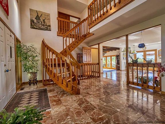 Absolutely extraordinary! This impeccable, custom built, contemporary is just that. The setting of this home creates the whole vibe as it's nestled within 52+ majestic park like acres. Travel up the long driveway while taking in the perfectly green lavished lawns, beautiful landscaping, rock outcroppings, lush trees and the most spectacular views of the mountains and beyond! Looking for privacy? Then this hidden oasis is just what you want! The front entrance welcomes you in through sophisticated double doors and into a bright and open foyer complete with plenty of natural light, high ceilings, skylights and one of a kind winding staircase. The layout of this home is perfectly situated so you can take in the beauty of the grounds from every room. The formal living room is cozy and comforting, a great place to read, entertain or unwind. The kitchen is beyond open and bright with plenty of skylights, vaulted ceilings and doors leading you out to the full deck that runs along the entire side of the house offering mountain views from every angle. The abundance of cabinets, the island and counter space make it easy to create wonderful meals for any amount of guests. Dine in luxury as the formal dining room with big long windows offers amazing views of the mountains and endless sky. There are 2 half baths located on the main floor as well as the laundry room, discretely placed so no one would ever know it was there and success to the 2 car garage. The den offers a very relaxing warm and cozy vibe with a grand stone fireplace embraced by two large windows, high ceilings, skylights and glass doors leading you out onto the deck. Off to the side a spiral staircase carries you up to a small loft, with the best views in the house! It's the perfect spot for a reading nook, small study or office space. From there you have access to the master suite. The amount and uniqueness of the window placement is so grand in this room it really is amazing. There's plenty of space, plenty of light, side by side closets and a large master bath with a jetted soaking tub, shower and double vanity. Also on the 2nd level, down the hallway, there are 3 well sized guest bedrooms, all offering lovely views from the window. One bedroom has a door connecting to the full bathroom. There is a gigantic full basement, that can be accessed from both inside and outside the house, ready to be used as a workshop, workout room or just used for storage space. This exquisite property backs up to state land and High Point so privacy will never be an issue. There is also a guest house, in construction, halfway up the driveway that could be finished and become the perfect spot for your weekend guests, Airbnb rentals, or your own daily use as an office, art studio, yoga studio, whatever your heart desires. This property is truly one of a kind, built by the current owners with love, it stands strong and true.