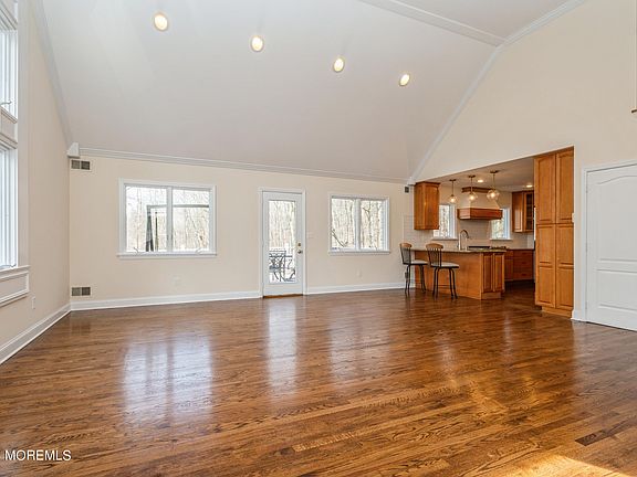 Tenants are out, house has been totally repainted, all wood floors refinished. Picturesque only begins to describe this meticulously Holmdel home. Situated on 1.4 landscaped acres, boasts an open floor plan, wood floors, Vaulted Living/Dining Room ceiling, gas fireplace, wall of windows, TREX type deck, fire pit, overlooking private treed yard. Custom Kitchen w granite, pennant lighting, SS appliances. Primary suite w cathedral ceiling, skylights plus private sitting area/office. Finished walkout basement w full bath adds versatility to the living space. Home has whole house generator, newer windows, landscape lighting & more! This home is a haven with its proximity to highly rated Holmdel Schools, parks, transportation, and stores. Do not miss the chance to call this Holmdel gem yours!