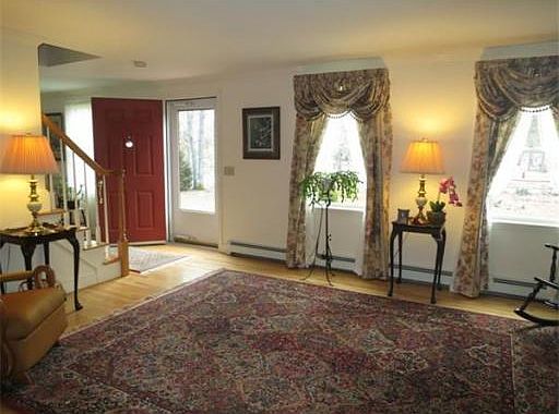 A nature lover's paradise at end of cul-de-sac. Enjoy 1.67 acres for gardening, bird watching and outdoor entertaining. A stunning Colonial with many improvements features a popular open floor plan ~ fireplaced living room ~ formal dining room with wainscoting ~ updated kitchen with custom birch cabinets, stainless appliances, wood floors, breakfast area, slider to deck ~ French doors lead to sunny family room with cathedral beamed ceiling and skylight. The master bedroom has updated bath. Two additional bedrooms, two additional baths, two car garage, attic storage, alarm system, central vac, storage shed, whole house surge protector, and more. Newer windows, newer roof, newer clapboard. Pride in ownership and it shows! Septic design for 5 BR. Back yard has so much potential for pool, play area, gardens.
