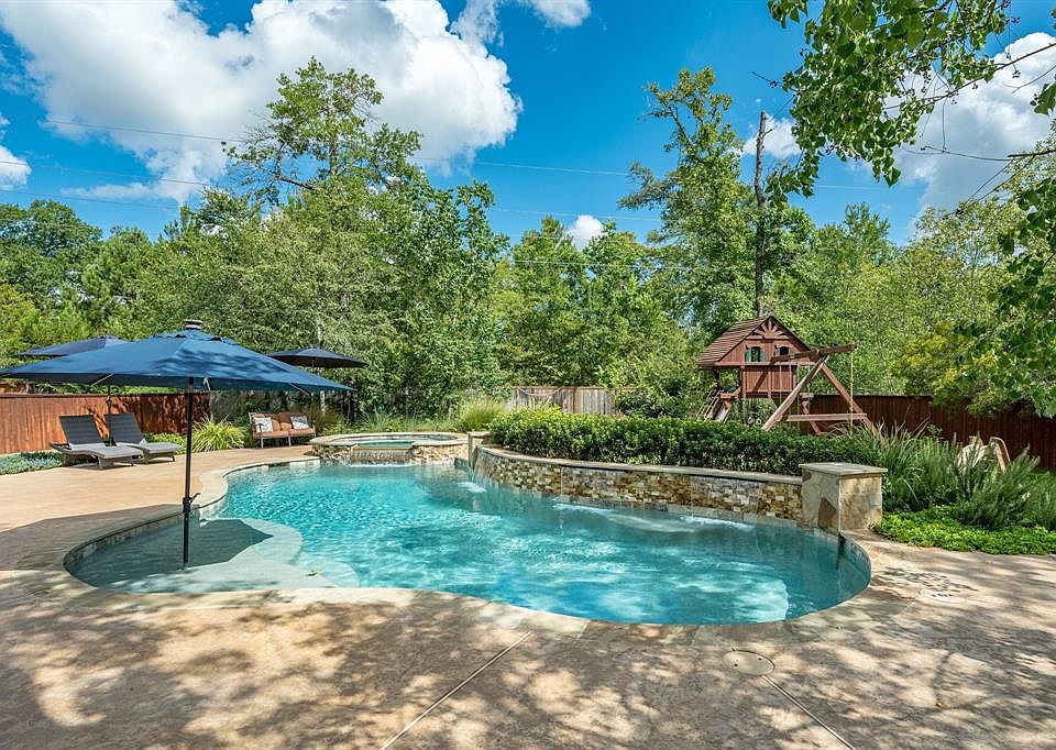 Exceptional home located on a quiet street in the sought after Tupelo Park area of Creekside Park. Watch the kids play from the welcoming front porch. Enter to find a flexible layout that is bright and open. Private study with built-in bookcase and view to the front garden. Large formal dining room. Two-story family room features a fireplace, built-ins, a wall of windows overlooking the pool and backyard and is open to the kitchen. The kitchen has abundant cabinetry and counterspace with warm tones, stainless appliances, and walk-in pantry. The laundry room features a custom built mud room space. The primary suite is conveniently located on the first floor with luxurious bath and large closet with custom built-ins with views to the backyard. Upstairs you will find a game room and dedicated media room along with four additional bedrooms and two full baths. Amazing resort style backyard with sparkling pool and spa, plenty of decking space, covered patio, and multiple play areas and lawn.