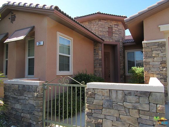 Roomy and private luxury home in the gated complex of Tuscany in Rancho Mirage. This highly upgraded 2,627 square foot home has three bedrooms, and two and a half bathrooms centered on an open floor plan design. There is tile flooring in the heavy traffic areas of the home, and ceiling fans throughout. Separate wet bar and den area. The gourmet kitchen has a double oven, breakfast bar, and granite counter tops. The master suite features a walk in closet, and a large bathroom with a Jacuzzi tub, a separate tile and glass block shower, and dual vanities. An interior laundry room has lots of cabinets for storage, and a washer and dryer. There is a covered patio in the back, with beautiful mountain views. Two car fully finished attached garage. The community of Tuscany includes several park areas, a playground, swimming pools, spas, and shower facilities. Please, not smoking or pets.