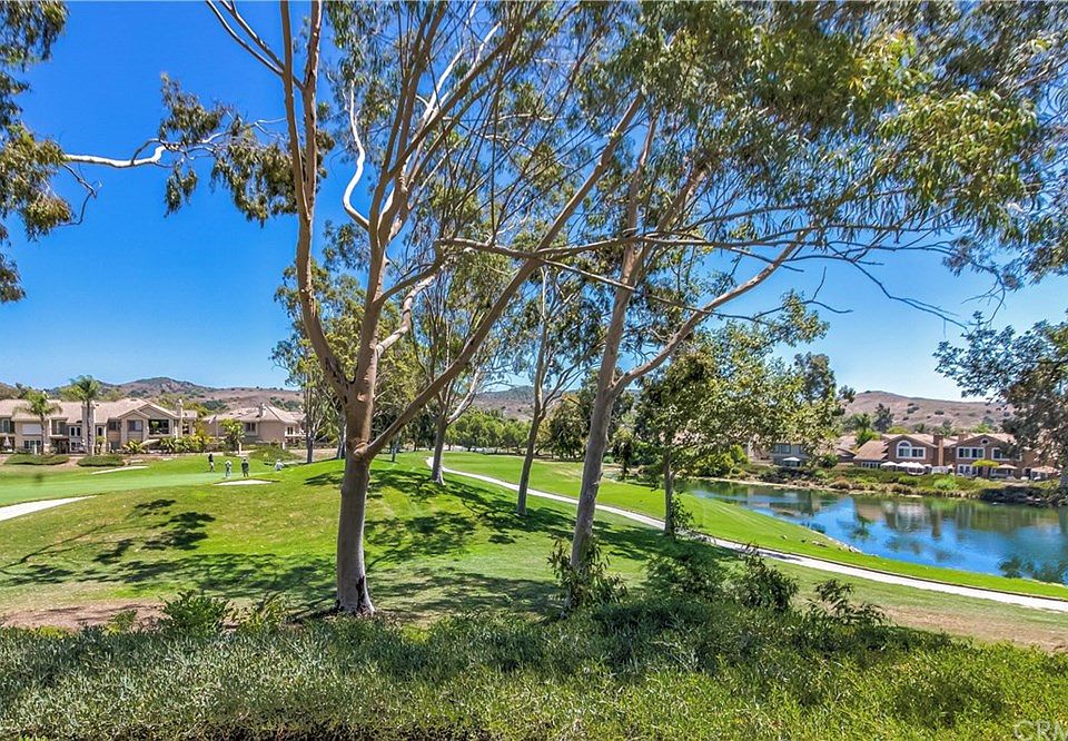 SINGLE STORY WITH A PANORAMIC TIJERAS CREEK GOLF COURSE & POND VIEW!! Resort Style Living!! This beautiful two bedroom home is located in the desirable Alicante Tract. The home features a stunning living room with vaulted ceilings, engineered wood floors, lots of windows, fireplace, plantation shutters, open floorpan and a formal dining room. The bright kitchen is upgraded with granite counters, travertine floors, beautiful cabinets, solarium windows and a quaint breakfast nook. A Gorgeous Master Bedroom is located at the back of the home with vaulted ceilings, plantation shutters, walk-in closet, access to the backyard and a view of the golf course. The master bathroom has a dramatic high ceiling with a skylight, stall shower, tub, travertine floors and dual vanity. At the front of the home you find a guest bedroom with built-in desk, laundry and guest bathroom. Relax in the backyard with a built-in BBQ and a panoramic view of Tijeras Creek Golf Course and Pond! Attached is a two car garage with a driveway. Enjoy the Alicante Association Pool and Spa and all the Rancho Santa Margarita city amenities - The Lake, Lagoon, Parks, Pools & More!