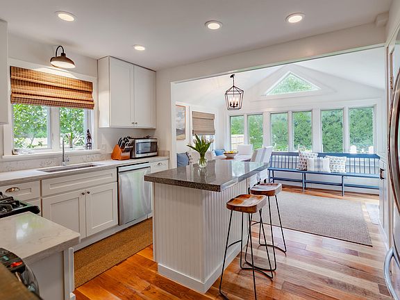 Enjoy the charm & character in this updated colonial with 4 bedrooms in South Burlington's highly sought-after Mayfair Park neighborhood. This home is bright & open with a sophisticated feel from its architectural details & timeless materials. You will be welcomed by the great curb appeal of home, beautiful landscaping, newly paved driveway, blue stone walkway & covered brick entry. Step through arched entry to living room with large bank of windows, fireplace, & hardwood flooring throughout. Cozy room currently used as a den could be used as dining rm or office on 1st floor. Open kitchen offers granite island, stainless appliances, & dining area with vaulted ceiling & built-in bench seating for all to gather. Newly designed entry offers mud rm space for gear & organization. One play/guest rm + ½ bath complete the 1st floor. Upstairs you will find the sunny primary bedroom & 3 more rooms with board & batten paneling and interesting fixtures plus an updated and tiled full bath. Off the kitchen you can enjoy access to deck overlooking flat backyard with space for games, grill and gardens. Apples & blueberries ready to pick as well as veggies from raised beds. Stone patio perfect for entertaining. Wonderful back shed for storage of toys, yard tools & sports equipment. Neighborhood highlights small town setting w/ convenient access to everything-schools, shopping, restaurants & new library. Outside activities abound w/walking trails, neighborhhood park, &promixty to city center.