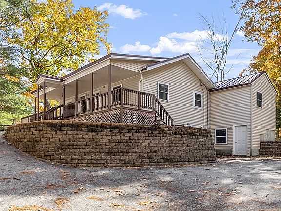 Move in right in time for spring/ summer season. This year-round Pine River Pond Waterfront home has been completely renovated. Features gorgeous wooden beamed cathedral ceilings. All rooms have ceramic tile floors that resemble hardwood without the upkeep. Open concept- kitchen features new custom hickory cabinets w/quartzite counters and SS appliances, dining room and living room have plenty of light w/ 2 sliders to gorgeous 12x32 deck overlooking the lake w/ a side covered 8x40 porch. Newly remodeled bathroom has tub/shower and linen closet. Home is listed as a 2 bedroom, but office/study is used as a 3rd bedroom (1 w/ a walk-in closet). Laundry is located in walkout full unfinished insulated basement. Mini splits just installed in July (AC/heat) and plenty of ceiling fans to keep you cool. House also has a 2 car detached garage with storage above. 100 Feet of waterfront w/ new composite dock and beautiful retaining walls. Nothing to do but move in and enjoy lakefront living~ furnishings are negotiable. Listing broker is the owner of this house. Easy to show!!