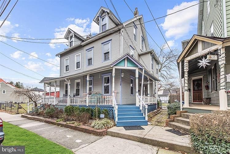 Low Taxes and Great Schools! Old world charm meets modern world living!! You must come and tour this wonderful Moorestown "in town" beauty. Enter the dining area from the wrap-around porch, which is open to the large living room great room with gas fireplace. The high ceilings, mouldings, and built-ins add to the character. The spacious new kitchen is a true WOW with updated cabinets and backsplash, granite counters, and sliding door offering views of fenced back yard with paver patio and shed. There is also a new powder room. Up the lovely staircase you will find an updated full bathroom with new fixtures and tile work, two large bedrooms, and a smaller one currently used as an office. Third floor has two rooms - great for teen suite with sitting room! Other recent improvements include the addition of Central Air, new windows on 3rd floor (all others were replaced earlier), and new front door. There is a full dry basement for storage. All this plus Low Taxes and great Schools!! This home is truly MOVE IN READY!
