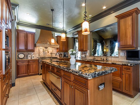 Beautiful, one of a kind, custom built, Leo Wilson home tucked away on a large culdesac lot in the Wyndover development. No expense or detail spared on this luxurious 6 bedroom, 6.5 bath custom home. Boasting a large courtyard, spacious rooms, a formal living room w/fireplace, formal dining room w/extended built in buffet area w/ wet bar, family room w/fireplace & views to back yard. Gourmet chefs dream kitchen with an abundance of counter space, large work island with prep sink, double ovens, dacor 6 burner gas cooktop, 2 pantries, sub zero fridge & freezer & a built in espresso machine. Additional special features include 2 laundry rooms, an isolated bedroom/studio/gameroom w/wet bar & bath, isolated bedroom/apartment w/living room, bath & mini kitchen, pool house w/catering kitchen, pool bath, storage room, & retreat like back yard. Also included is a secluded spa area, a secluded side yard w/garden area. The beach entry pool features a rock waterfall w/slide & a sunken swim up bar