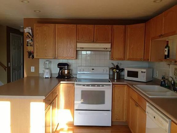 Sunny 3BR 3BA townhouse. Stretch out with 1970 sqft of living space; central heat and air, a connected 1-car garage, mudroom, beautiful views and plenty of storage. Snow removal also included. First Floor offers 13X22 living room with brand new carpeting and 20X24 eat-in kitchen with hardwood floors and breakfast bar. Also on first floor is bath with washer/dryer hookups.Second Floor features two enormous bedrooms, the Master Bedroom 12X20 with beams, skylight, two large closets, and full master bathroom with shower and tub. 2nd bedroom is 14X20 with closet space and it's as big as it sounds. Also on floor two is a 3/4 bath with stand-up shower and linen closet. The third bedroom/loft (13X22) with skylight, closet and storage. There is also a back desk for grilling.Heat is oil/forced hot air and is extremely efficient due to newer construction (built in 2002) and that is it a middle unit. Available 6/15.