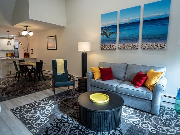 Summer 2025: Early July through Labor Day (30 day minimum). Great, walkable location in Newport, RI. Completely remodeled in a sleek modern design with high quality details throughout. Soaring ceilings, abundant lighting, air conditioned, and a spacious private deck. Building is located in a quiet alcove next to a park yet steps away from vibrant Thames Street and Newport Harbor. Two off street parking spaces in safe, private lot for the building. Rent includes all utilities (electricity, gas, water, internet). Available July 7 - Sept 1 for a minimum of 30 days. $5,500 for 30 days. Note: The north end of the condominium building suffered fire damage earlier in the year and has not yet been repaired. The south side of the building, where my unit is, is in great shape. The rate has been reduced in recognition. Summer 2025: 30 day minimum. Available July 7 - September 1. $5,500 for 30 days (pro-rated for longer stay within stated dates). Private parking - 2 spaces plus pass for overnight street parking for a 3rd car, if needed. No smoking. No pets. Quiet building.