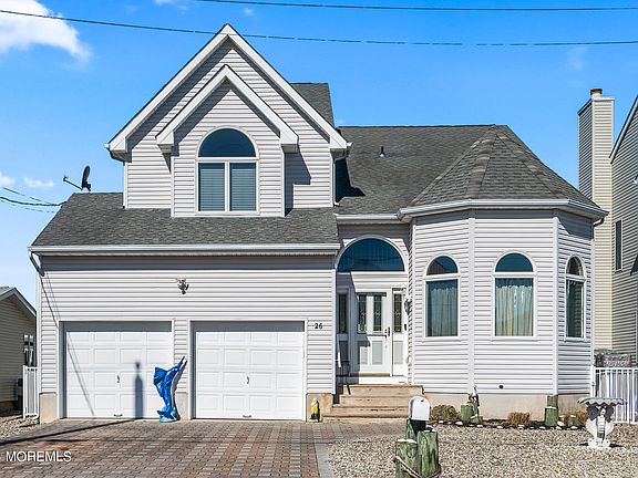 BOM DUE TO BUYERS HOME SALE CONTINGENCY. QUICK CLOSING POSSIBLE. Located within minutes to open water in the Baywood section of Brick, this 4 bdrm, 2.5 bth home is in absolute move-in condition. Walk into the grand foyer w/ vaulted ceiling & large front windows shining into the formal LR. Perfect waterfront layout offers open kitchen with large breakfast bar leading to dining room and family room w/ woodburning fireplace to get amazing water views & finished off with gleaming HW flrs. 2nd flr Master Bed with WIC, Master Bth w/ double vanity, shower stall & Jacuzzi tub & also offers rear balcony. Enjoy the sunsets out back on the large composite deck, sitting in the hot tub or by the firepit. Outdoor shower, 40+ft of docking, vinyl bulkhead & PWC lift. House exceeds elevation requirements
