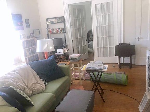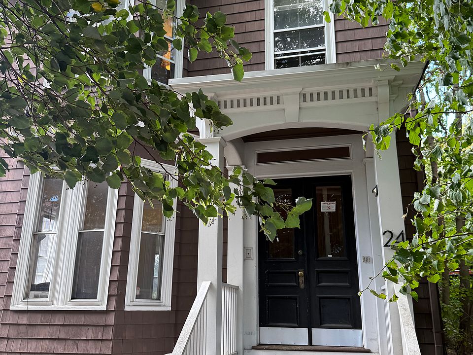 Ultra Charming, and large unit in Prospect Hill Victorian steps to Union Square. Sunshine, high ceilings and hardwood floors throughout. Living room with bay window and bedroom separated by French doors. Updated kitchen & bath. Corner lot with cute side porch. Easy parking on street with Somerville permit. 2nd bedroom is very large and has private bath + 2nd private entrance. Laundry. Great apt! (Reference #141767) No broker fee to tenant