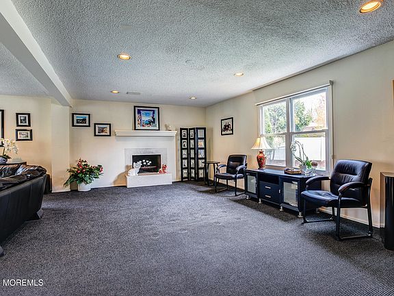First floor offers kitchen w an abundance of white cabinetry ,double oven,oversized pantry ,recessed lights & ceramic tile flooring. An impressive sized LR/DR combo w wood burn. fireplace and 5th bed.2nd Fl has 4 large bedrooms w large guest bath.Primary bedrm w Lg WI closet and 2nd closet extra wardrobe. Recessed lights in most rooms Primary bath w shower, a dressing area vanity/lights. Expansive fenced in yard w a concrete IG heated pool completes this wonderful spacious home! Near schools,Rte 9 & 18! Shopping,A commuters dream location