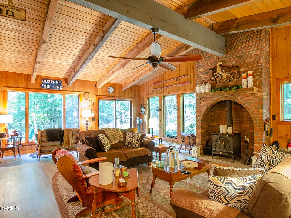 ks Single story, year-round 3 bedroom, 1 bath ranch near Cherry Plain State Park. This immaculate home has been completely redone from top to bottom. Recent improvements include, metal roof, well pump, hot water heater, replacement windows, tile and laminate/vinyl flooring, interior and exterior doors, updated kitchen, updated bathroom all tastefully done. Home features pine tongue and groove walls, a gigantic rustic great room (30'x20') with wood stove featuring a brick hearth with reclaimed mantle. Dining room has a raised hearth wood stove for cool fall evenings. Summers can be spent in a newly completed gorgeous screen room with custom reclaimed cabinets. The expansive primary bedroom has lots of windows and a great view of the yard. This impeccably maintained home sits on two acres with a babbling brook running through the back property line. The sound will lull you to sleep at night. Location offers easy access to Route 22, Jiminy Peak ski area, Berkshires, Vermont and capital region. This is a country gem for a weekend retreat or full time residence. Come for a visit, you'll want to stay for the peace and quiet.